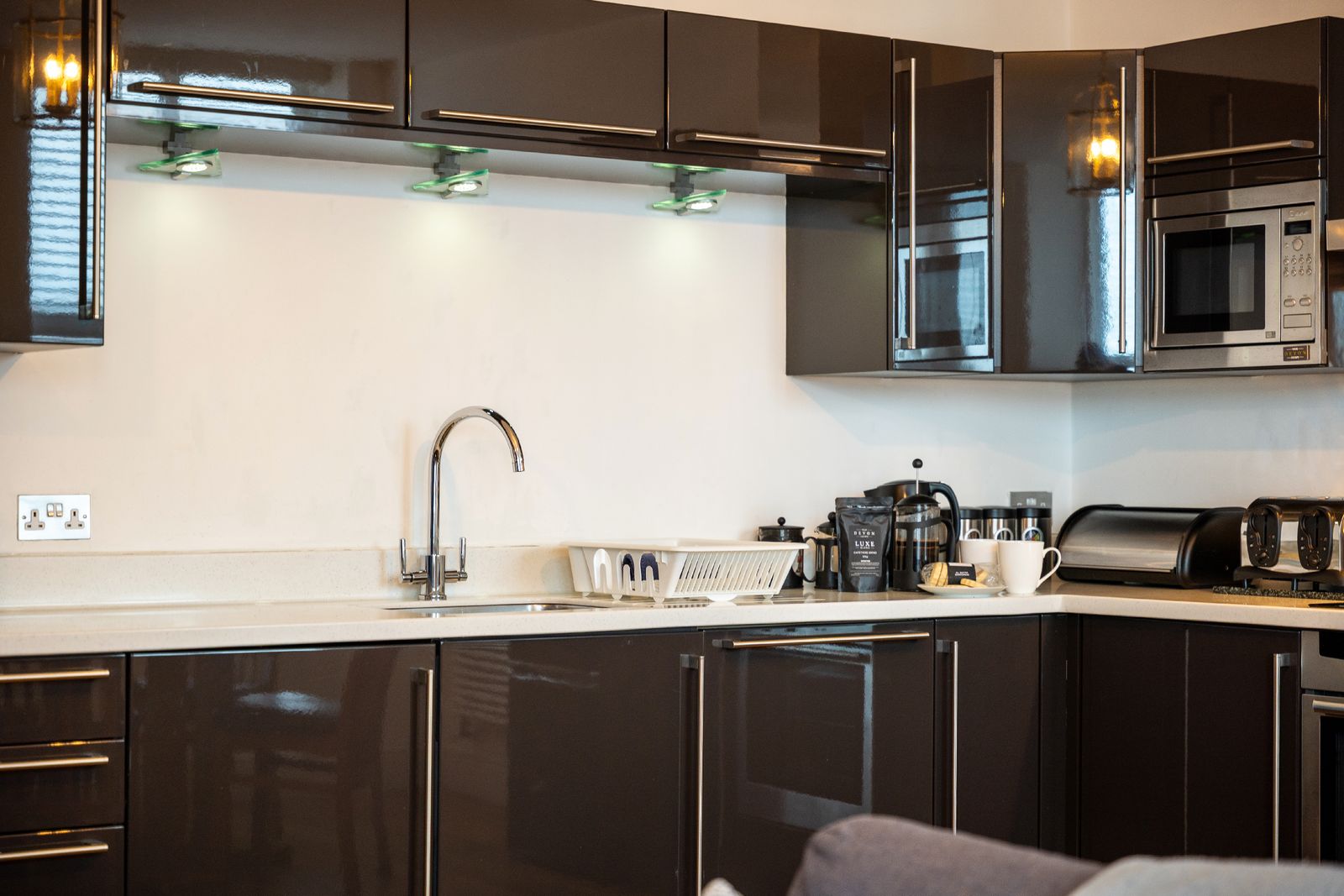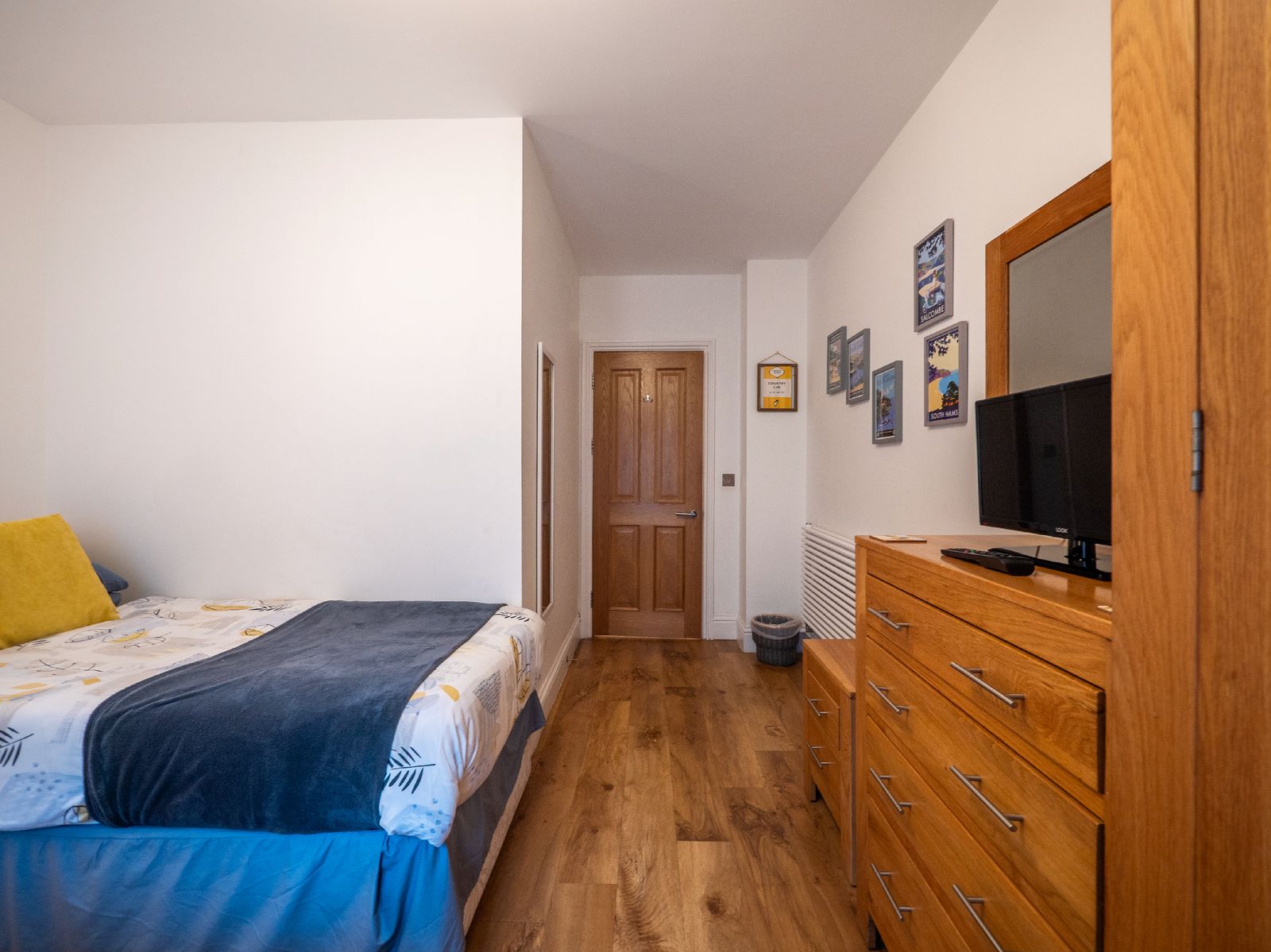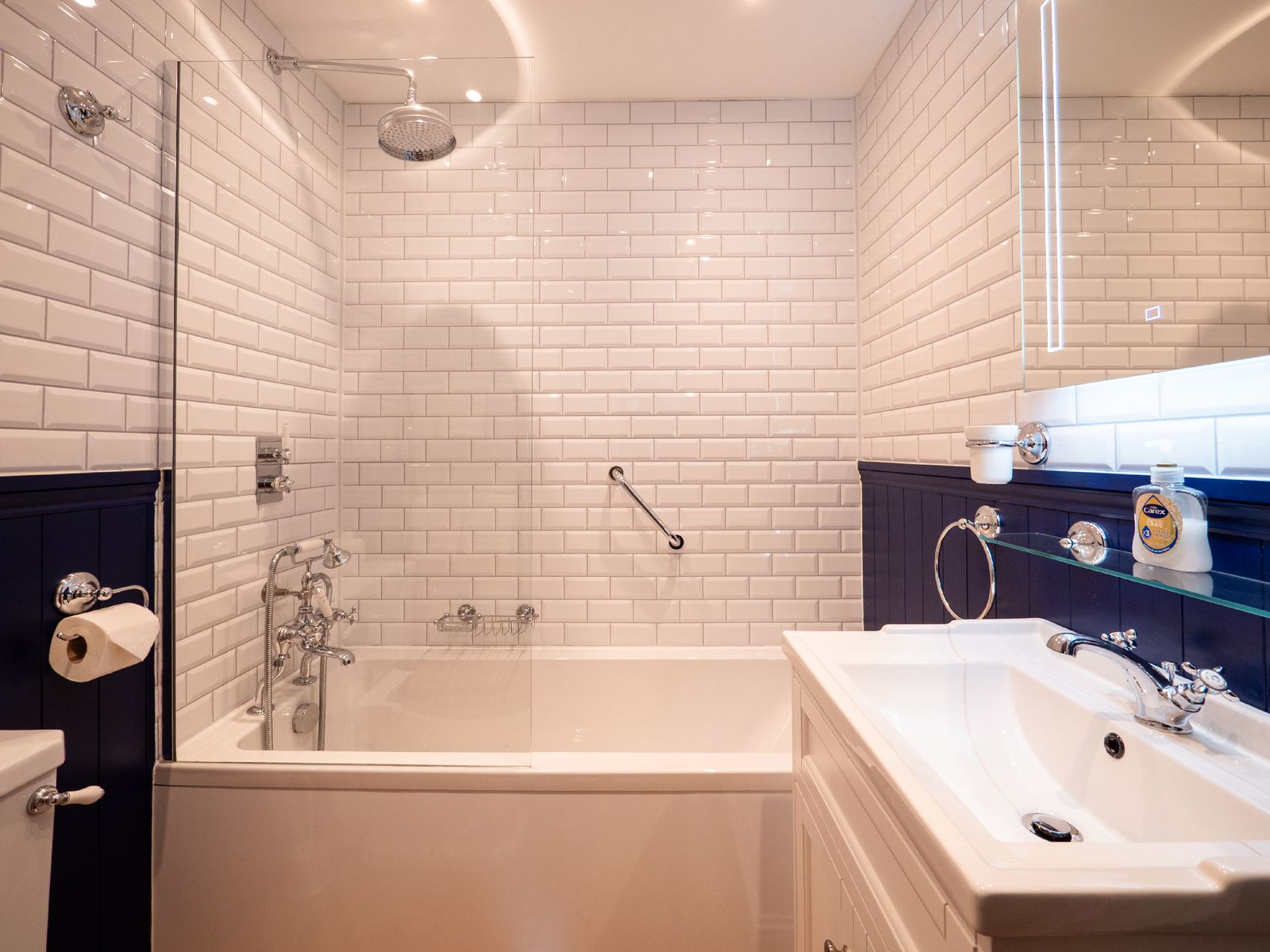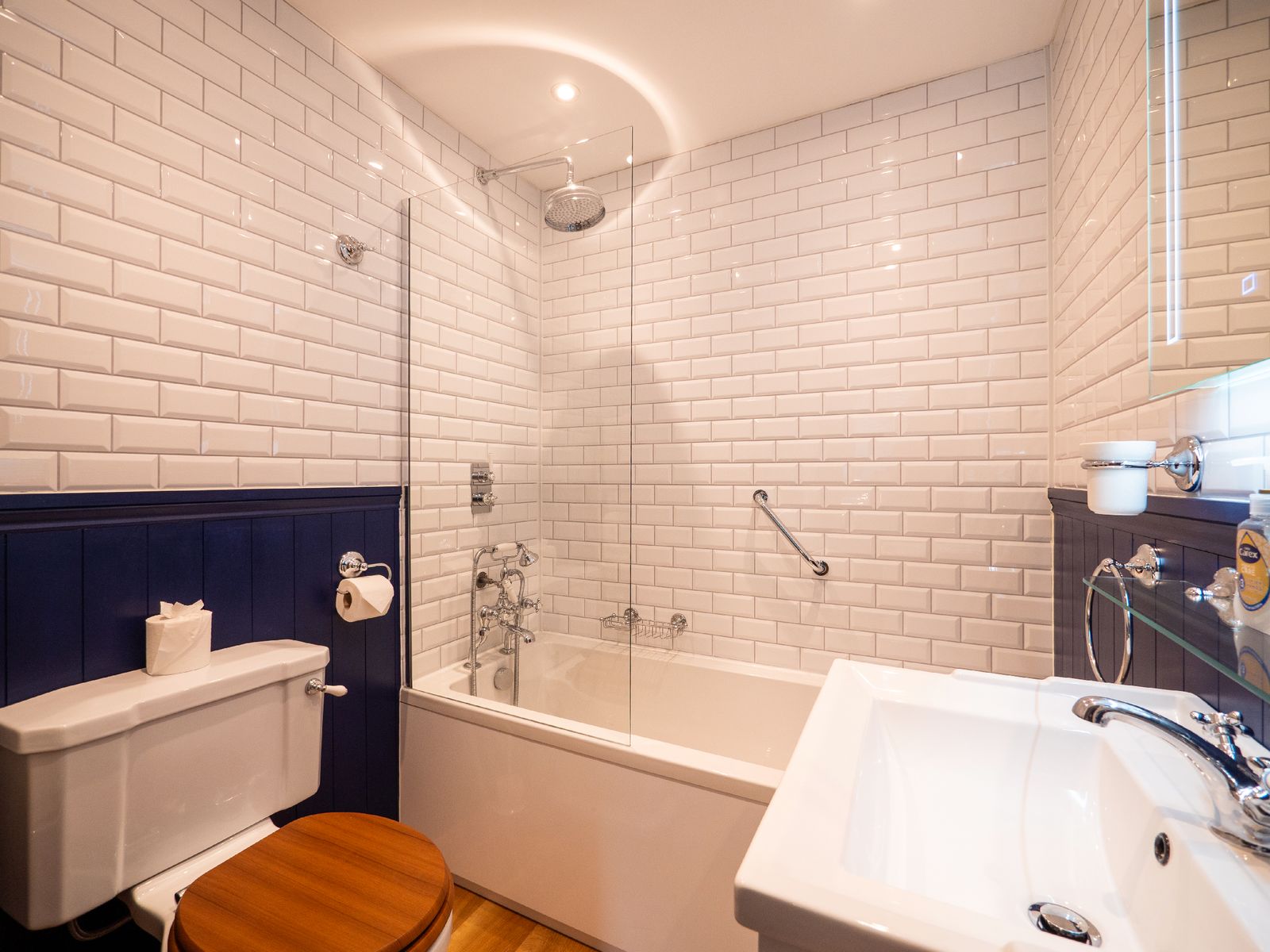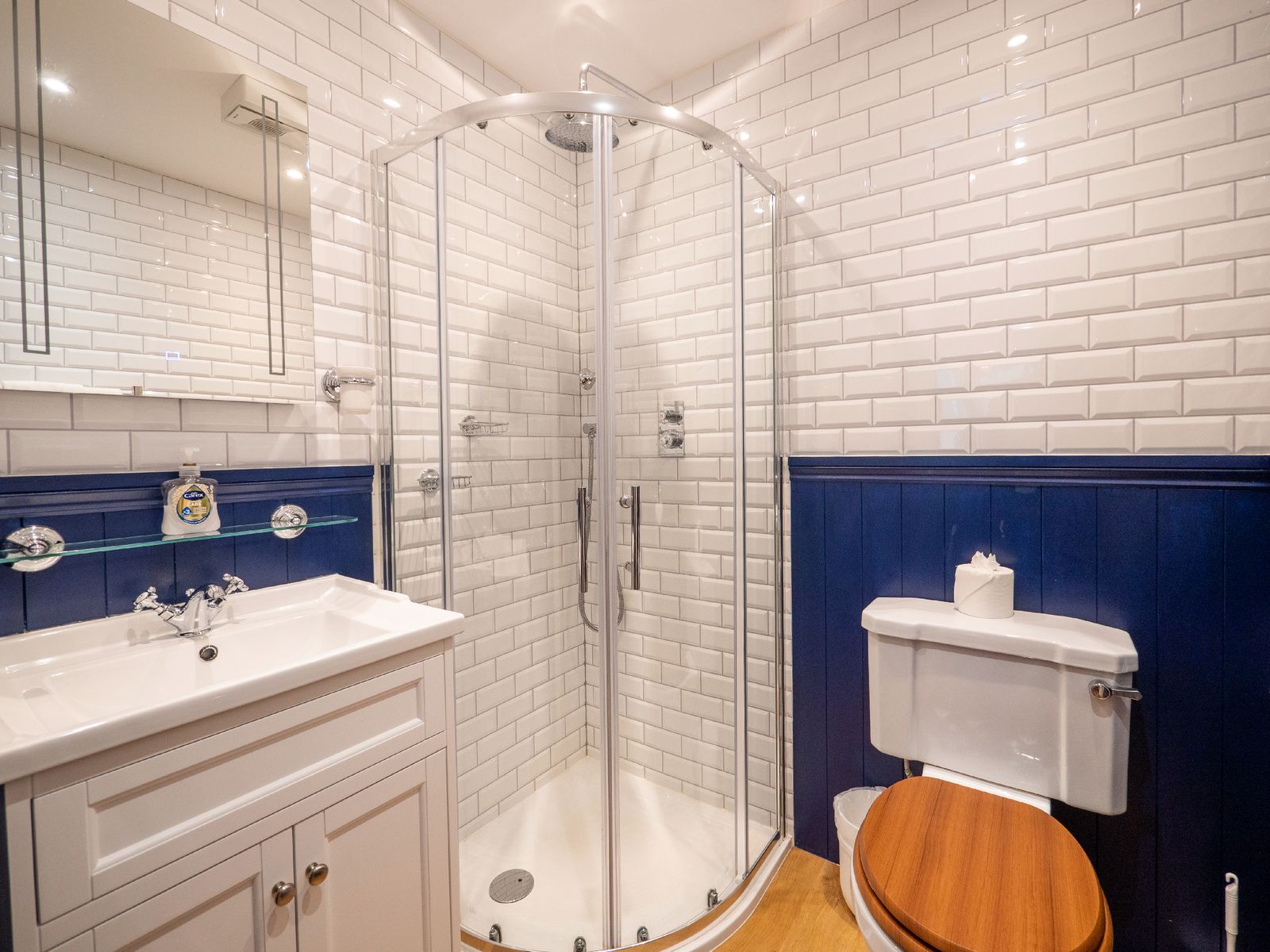 The master bedroom is a calm and inviting retreat, complete with double bed, TV, ample storage and a stylish en-suite bathroom featuring bath with shower over, heated towel rail and quality fittings. The second bedroom offers twin beds, TV and a Juliet balcony, perfect for letting in the sea air. A separate family shower room provides additional convenience.