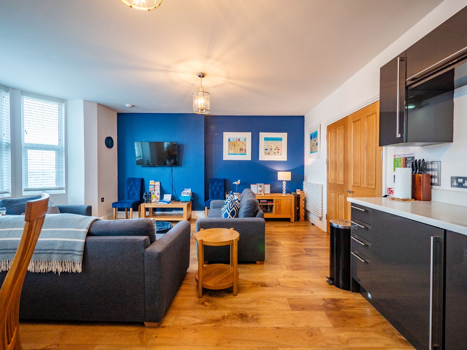 Set in the heart of Torcross, overlooking the dramatic sweep of Start Bay, 9 At The Beach is a beautifully presented first-floor apartment offering comfort, style and an unbeatable coastal setting.