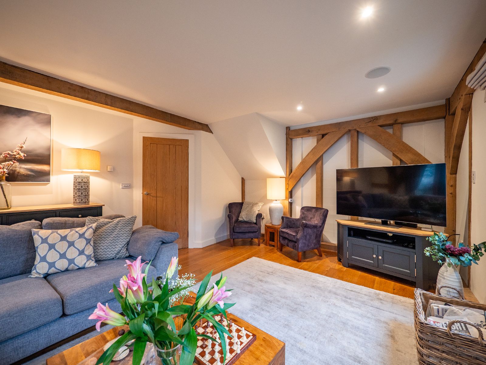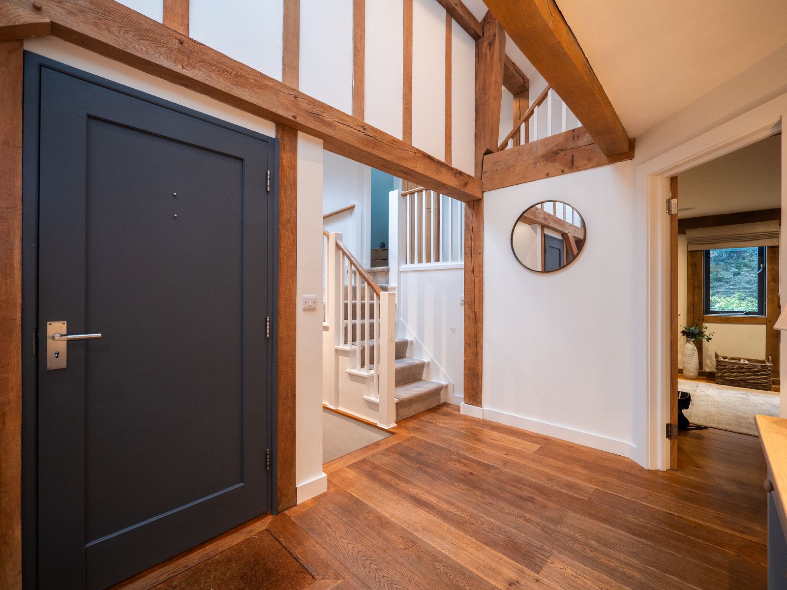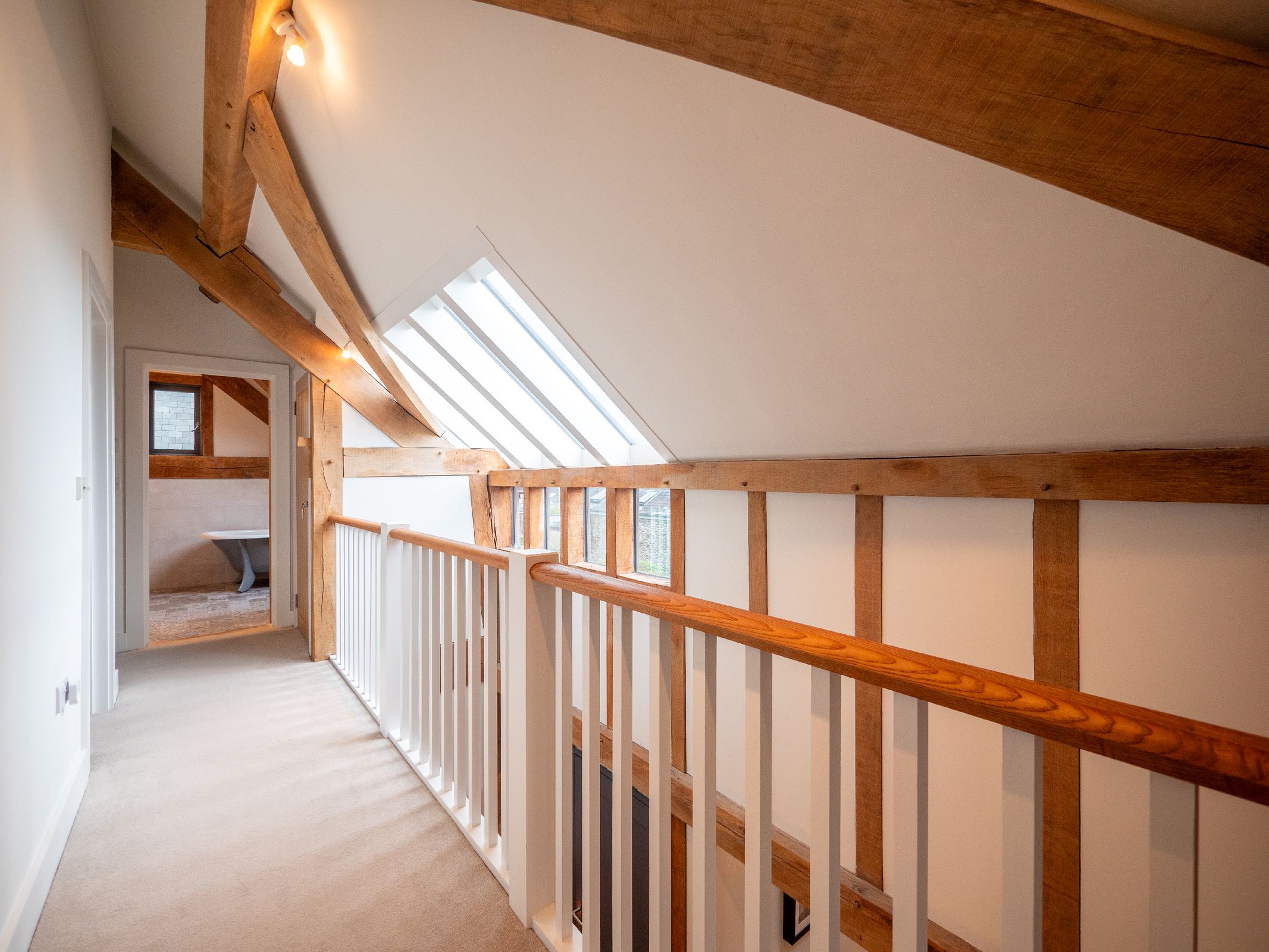 The upper landing provides elevated views across the property and a wonderful opportunity to appreciate the craftsmanship of the oak structure.