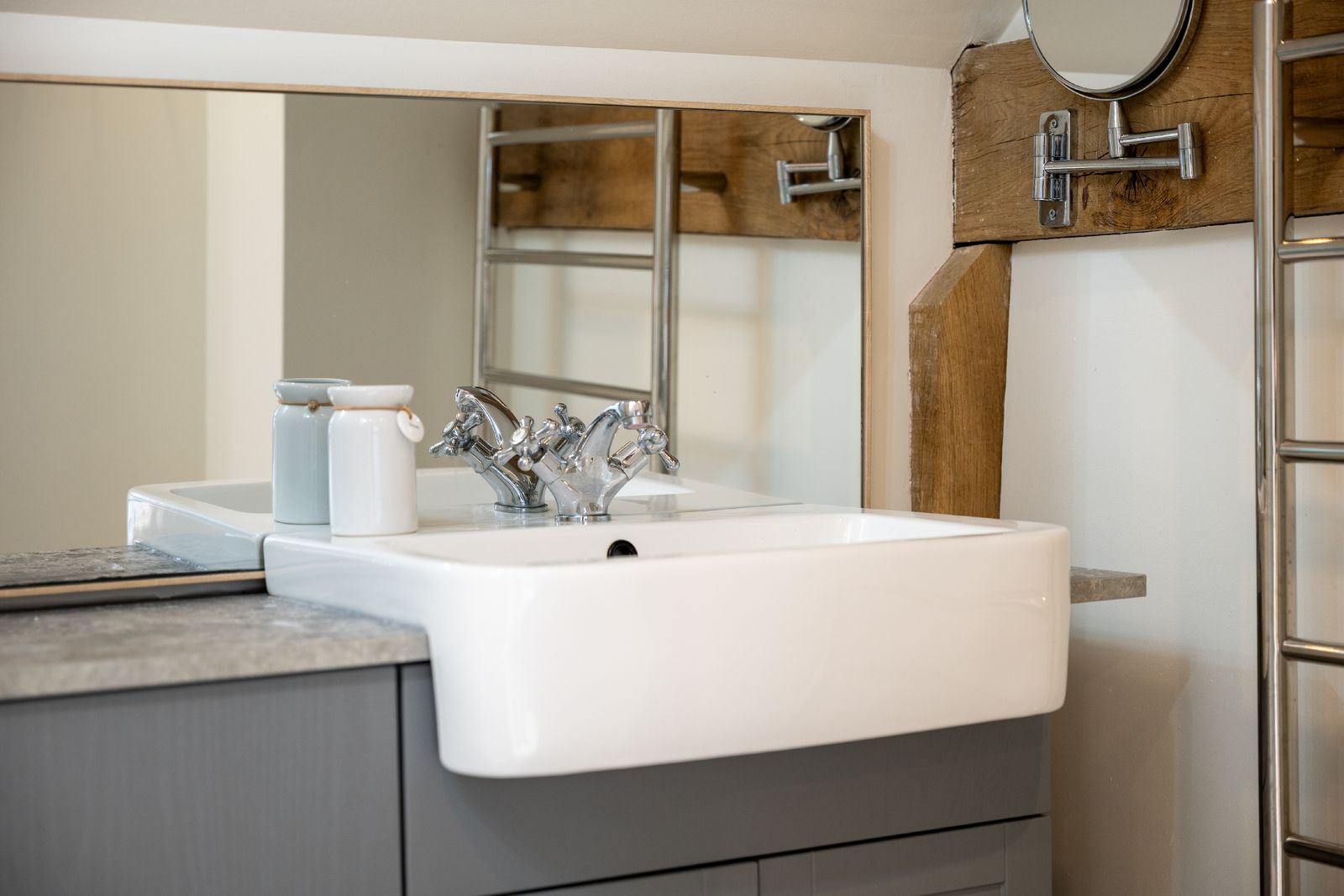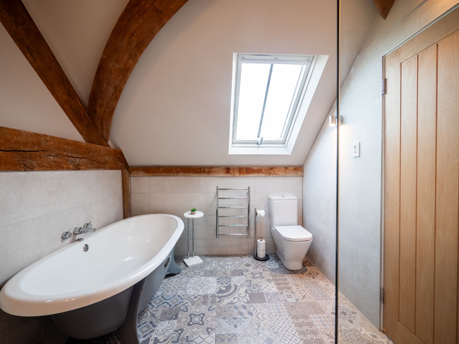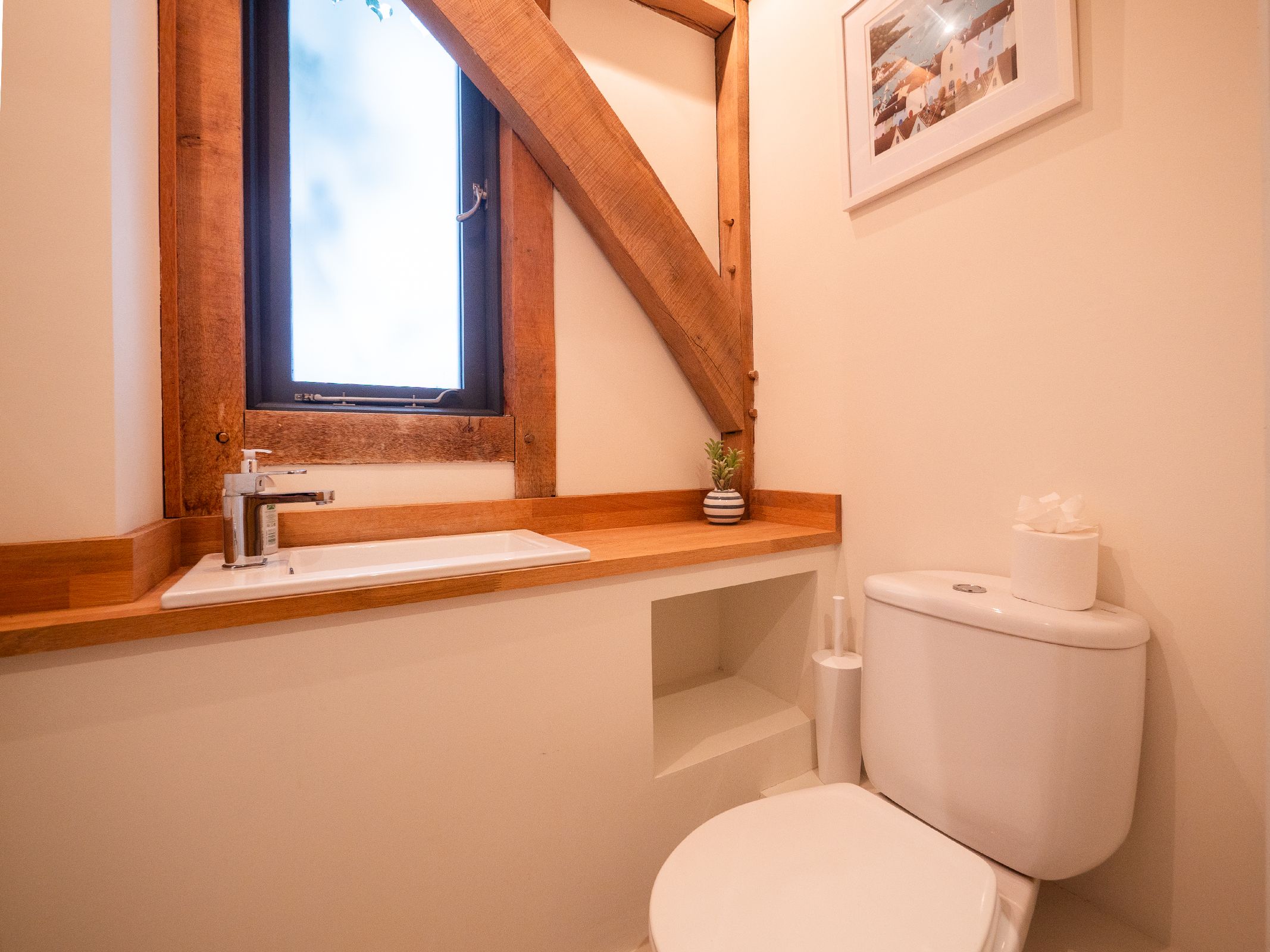 The upper landing provides elevated views across the property and a wonderful opportunity to appreciate the craftsmanship of the oak structure.