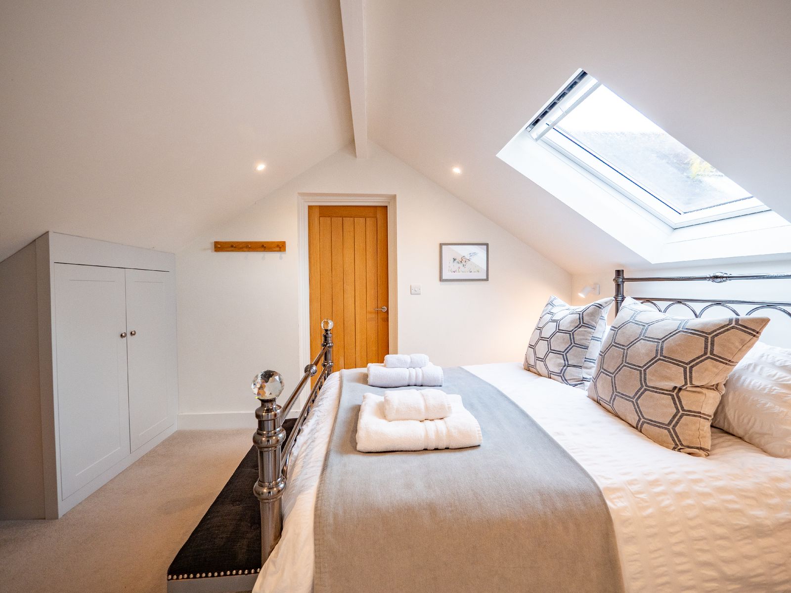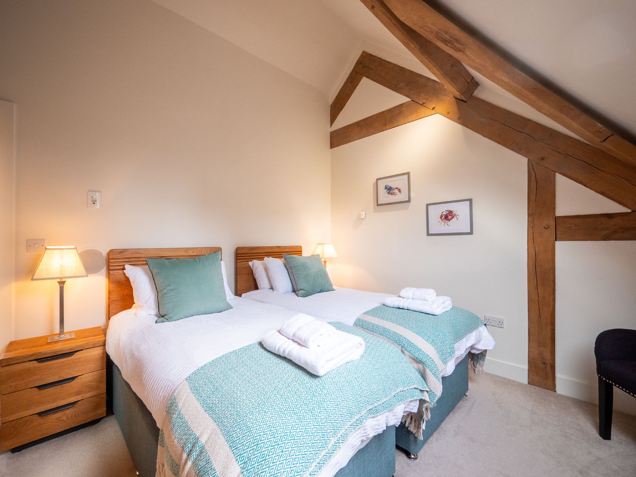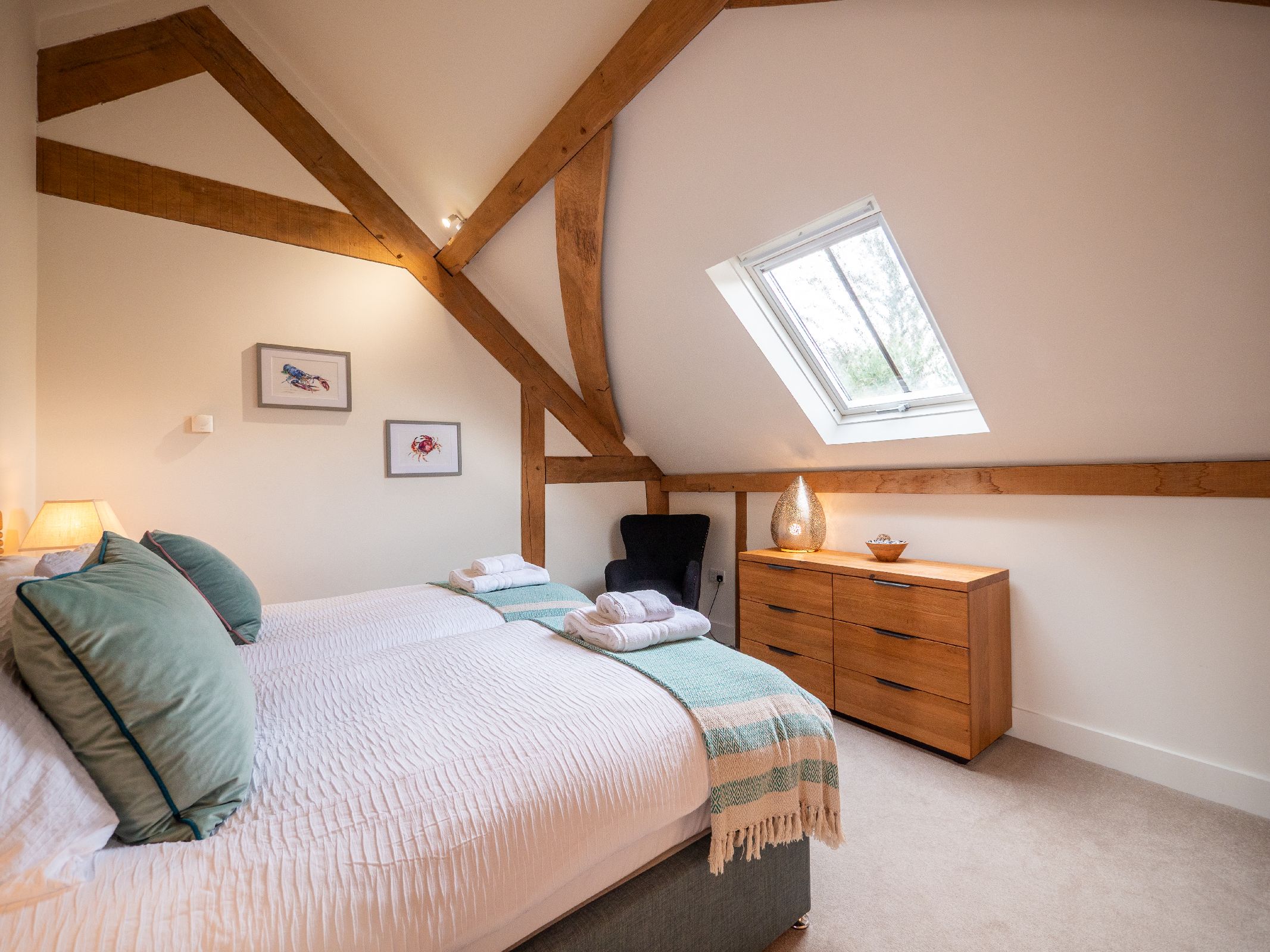 • Bedroom 3 is arranged as a twin but can be joined to create a super-king bed (requested at least seven days before arrival). It offers Velux windows, plenty of drawer and hanging space, and sits beside the family bathroom.