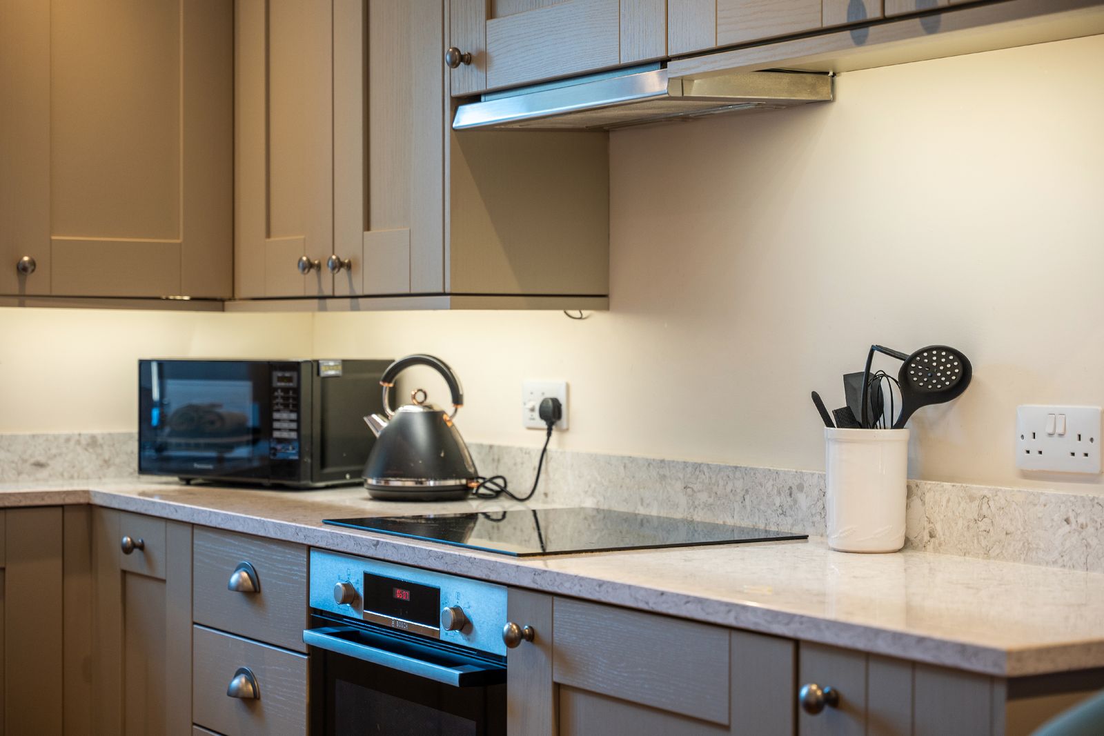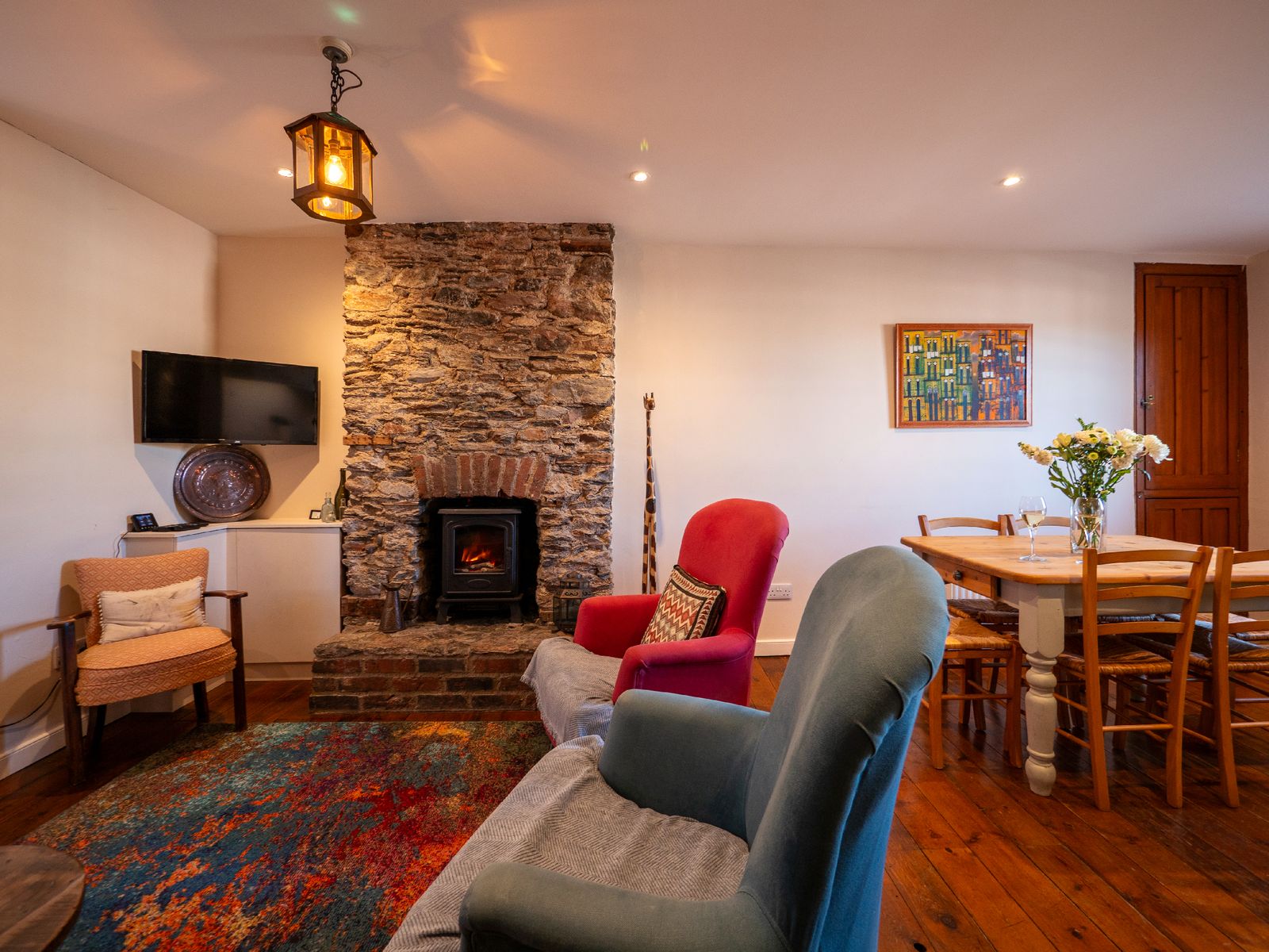 - Open-plan living with electric log burner for cosy evenings