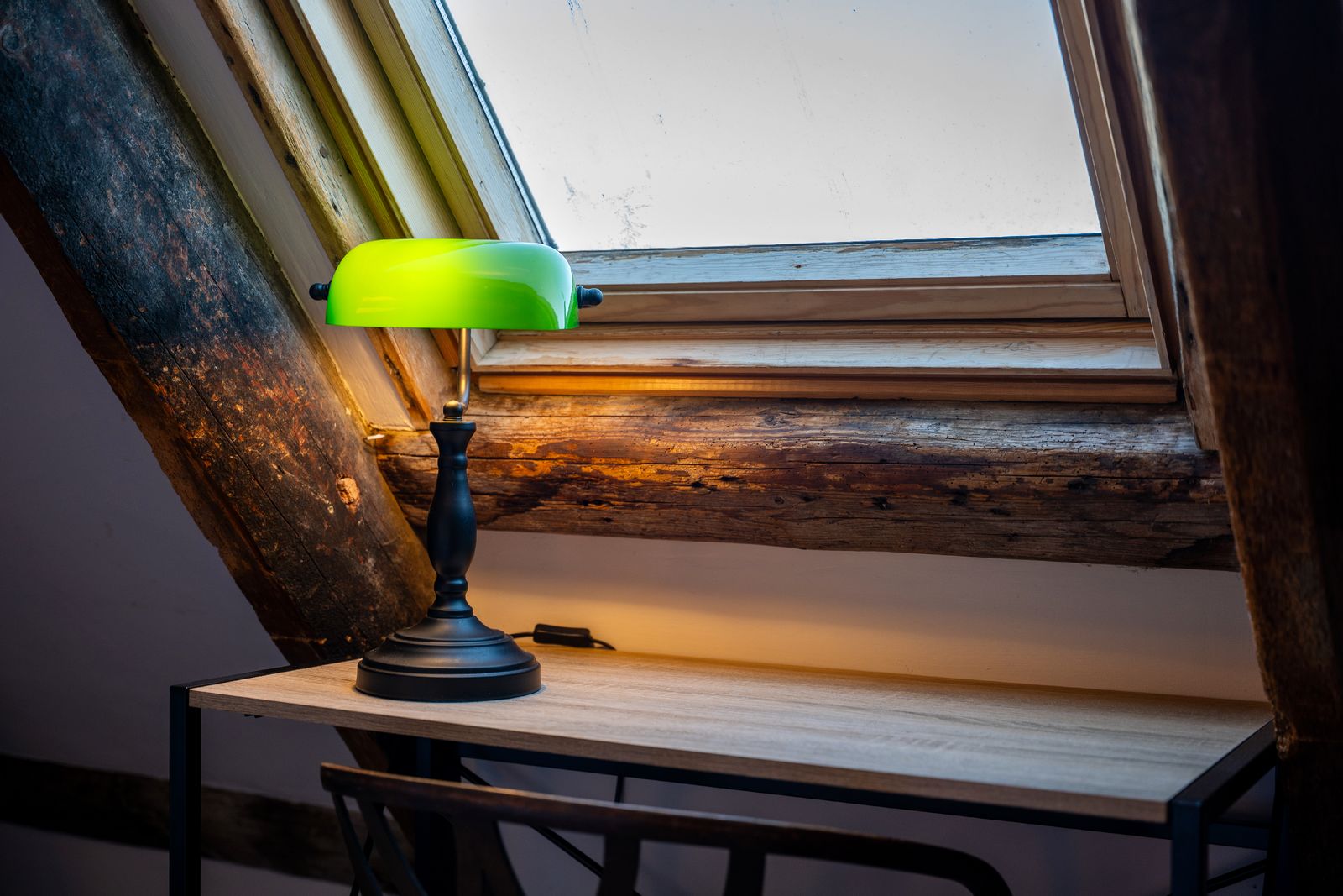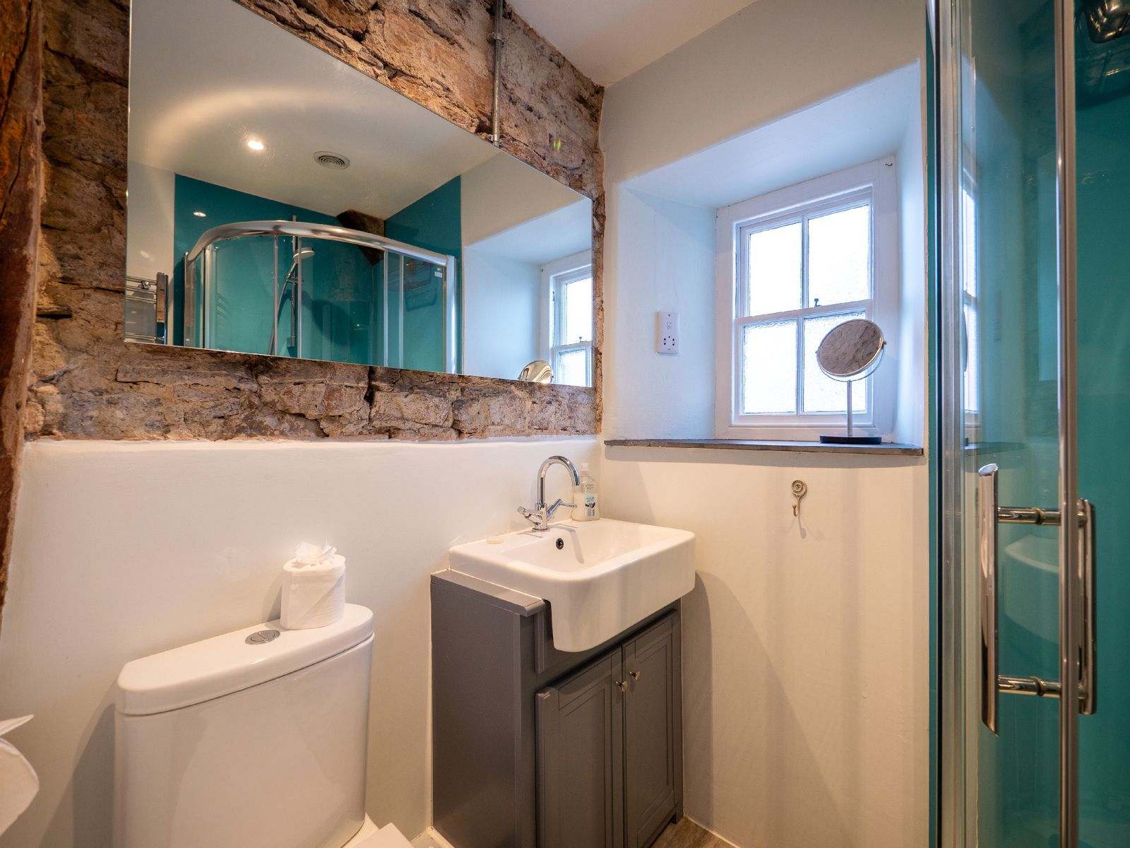 The final bedroom is located on the second floor, a charming twin room with desk space and Velux window offering rooftop views across Dartmouth. Please note there are low beams when accessing this floor, adding to the cottage’s historic character.