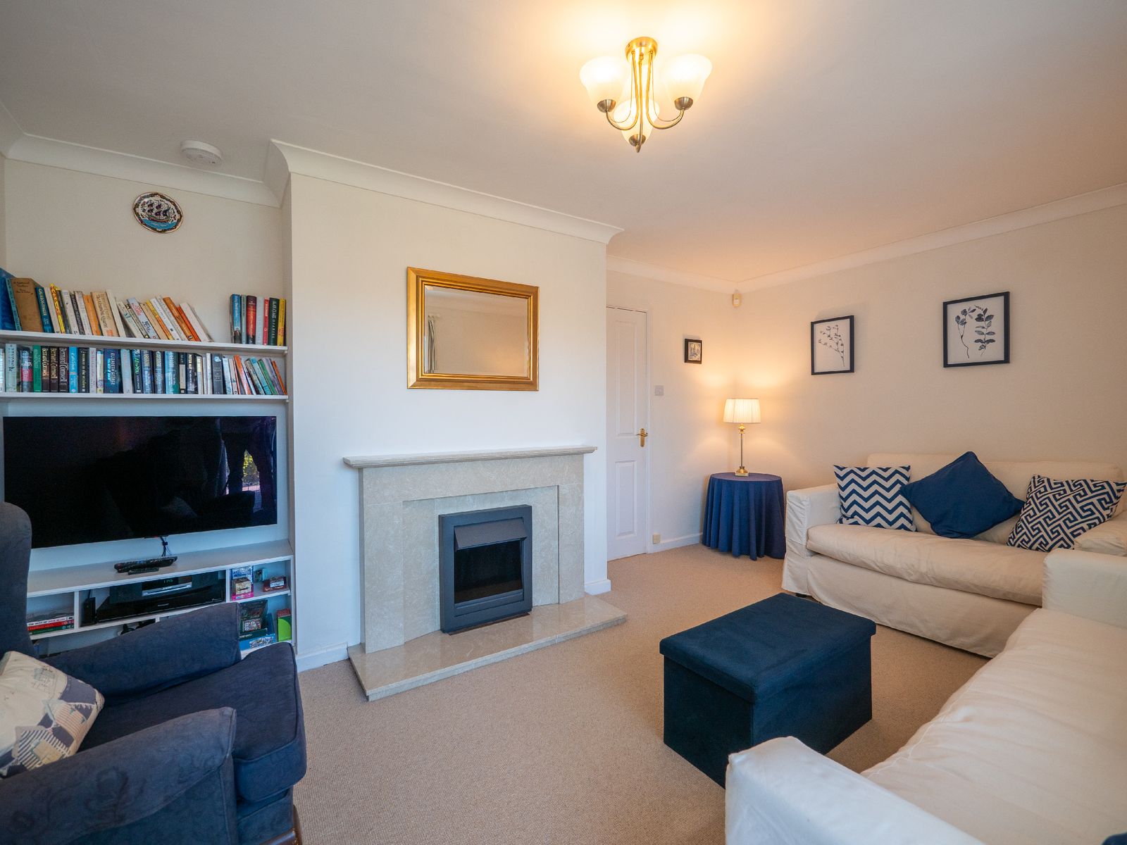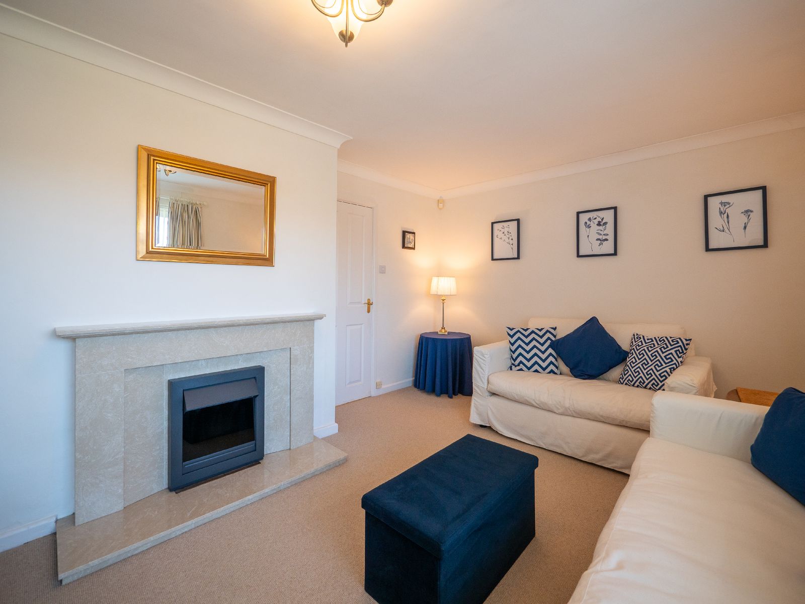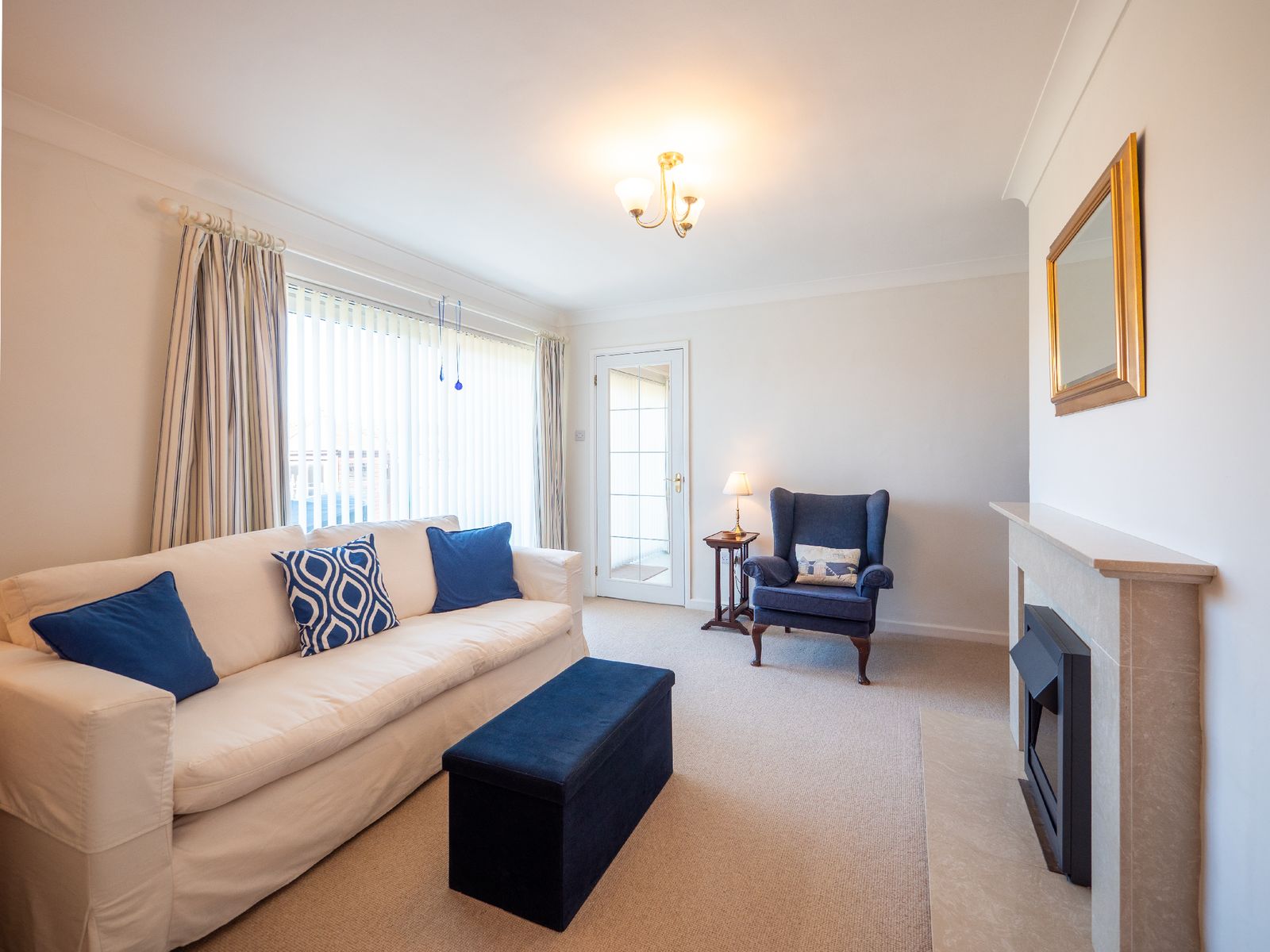 Step inside to discover bright, modern interiors designed with comfort at their heart. The welcoming living room features soft seating and playful pops of colour, making it the perfect place to unwind after a day exploring the coast or countryside.