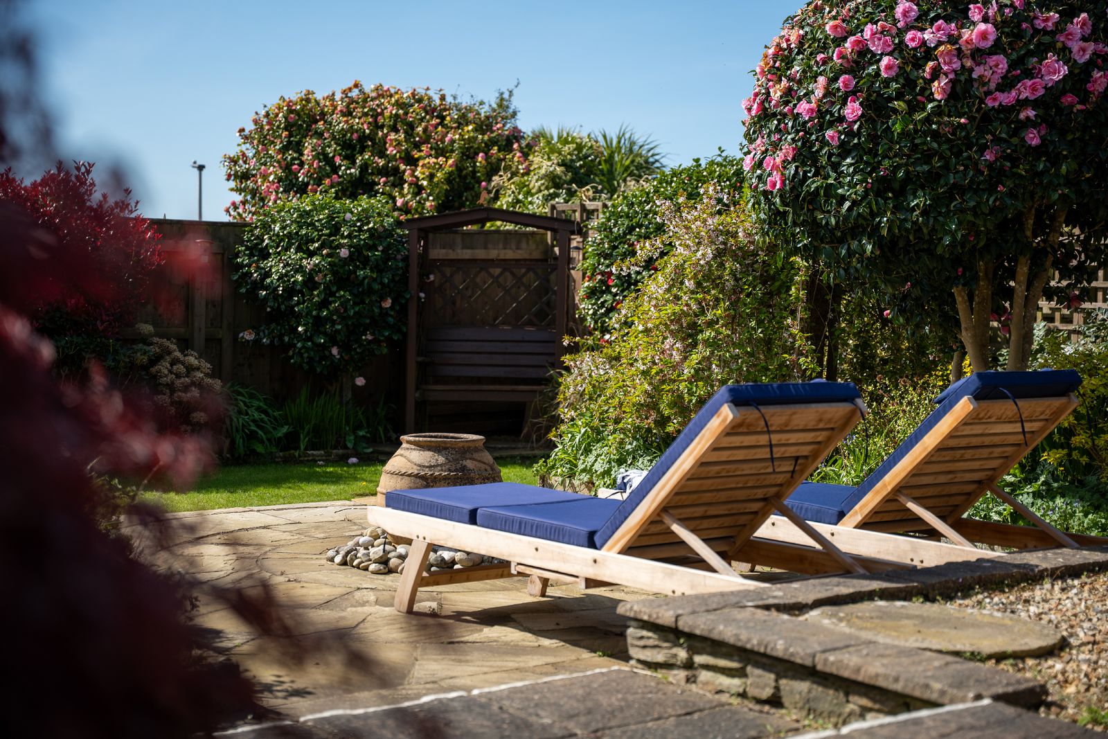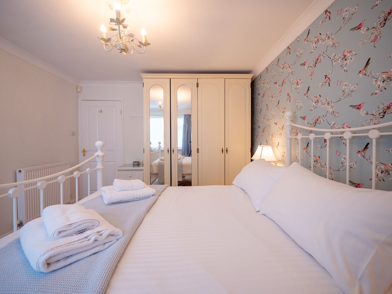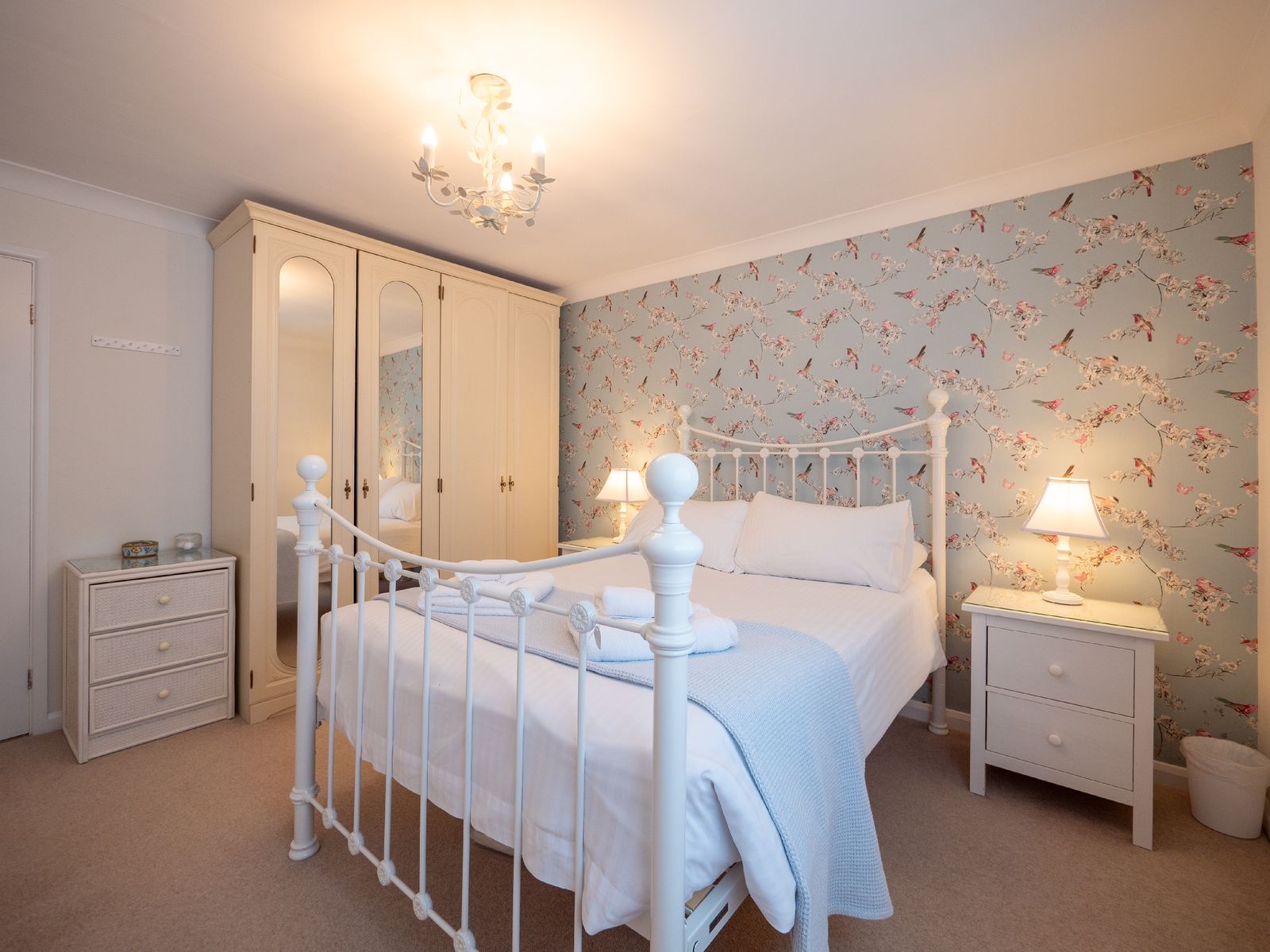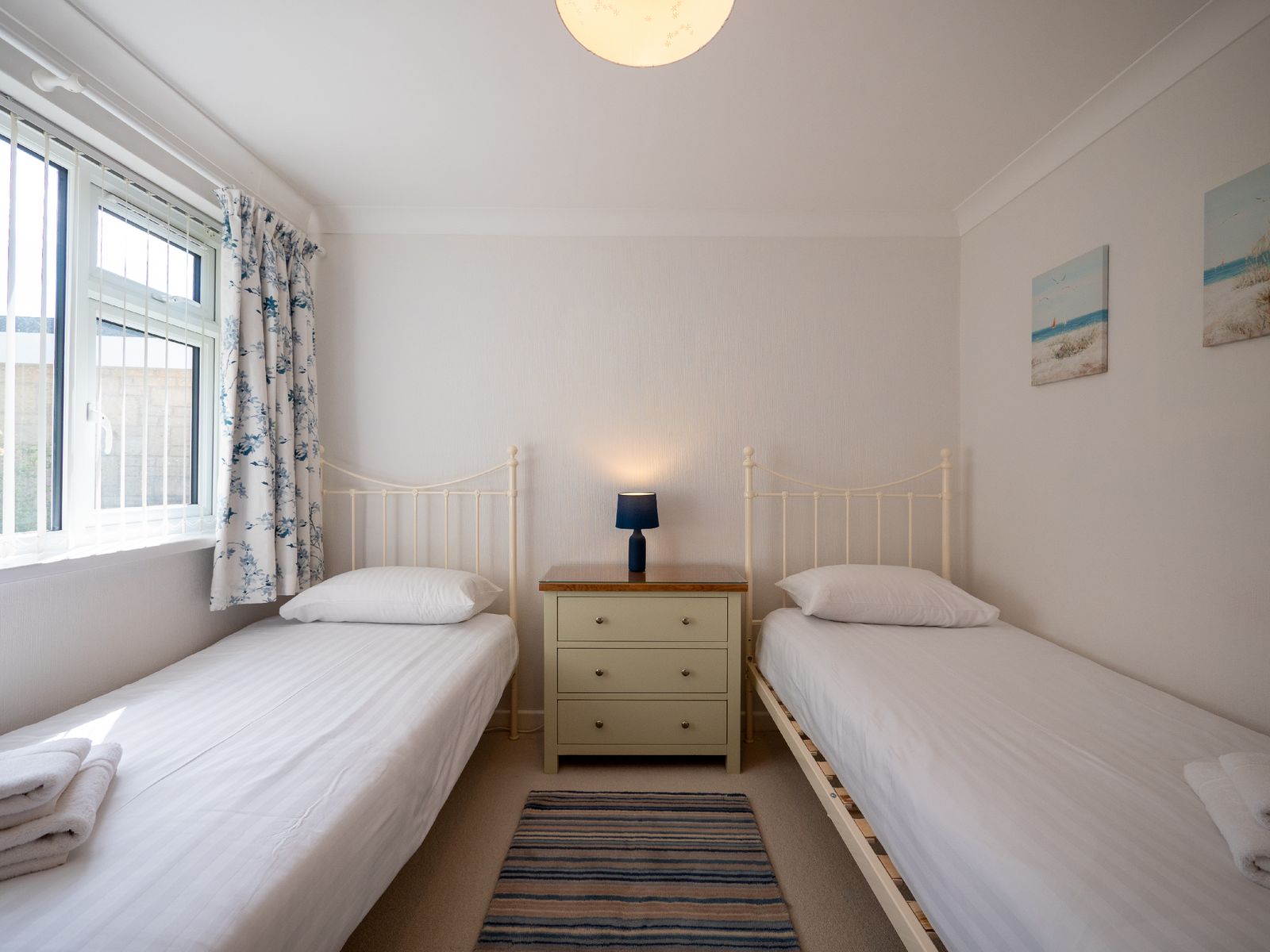 Pear Tree Lodge sleeps up to four guests across two well-appointed bedrooms. The peaceful master bedroom overlooks the garden and features a comfortable double bed with ample storage, while the twin bedroom at the front of the house offers flexible accommodation for family, friends or colleagues.