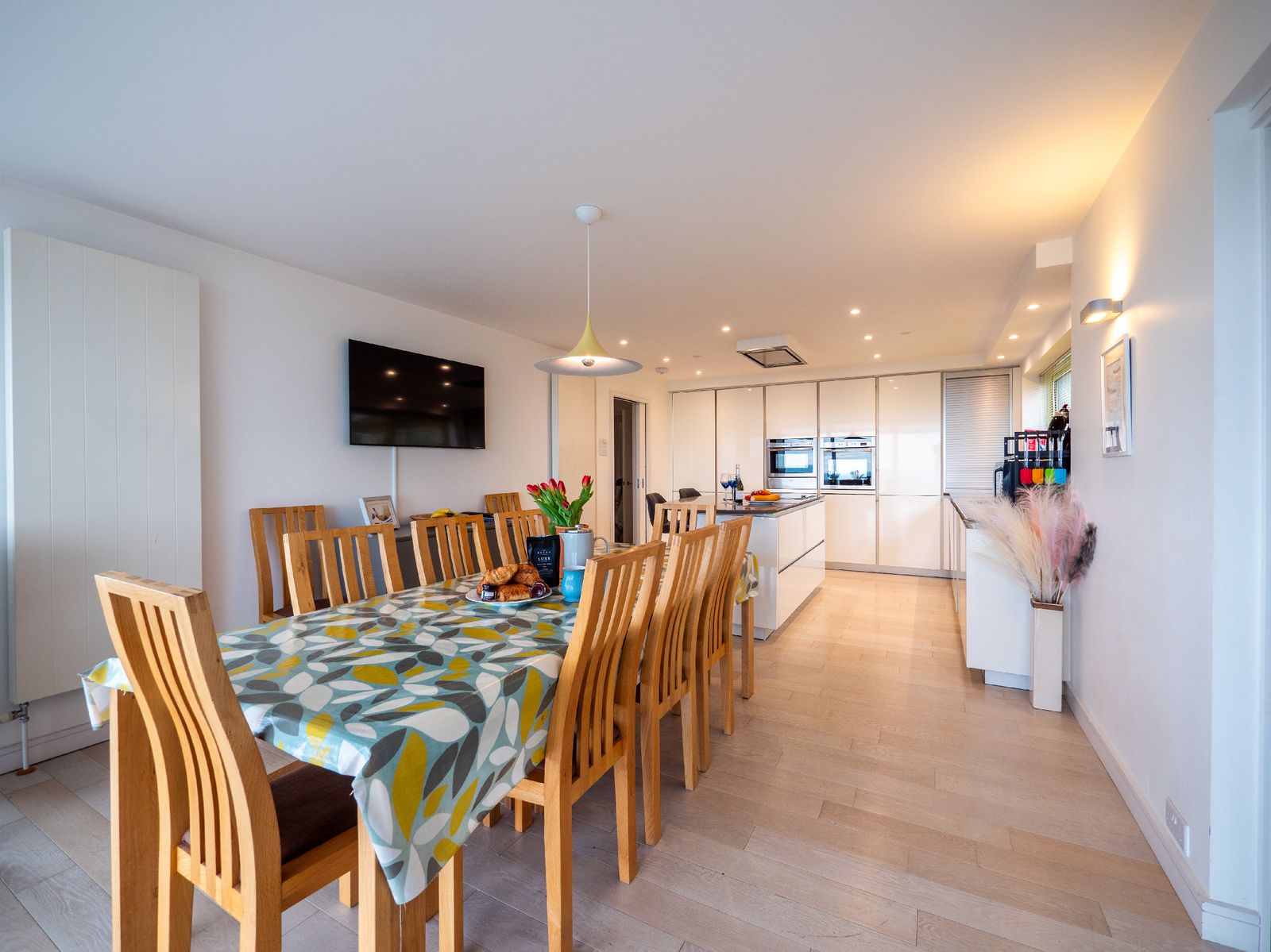 Skerries is a stunning detached house close to the heart of the sought-after coastal village of Strete. Carefully refurbished, it offers stylish, generous accommodation with far-reaching sea views from large windows and a wonderfully flexible layout, making it an ideal base for families or groups holidaying together in South Devon.