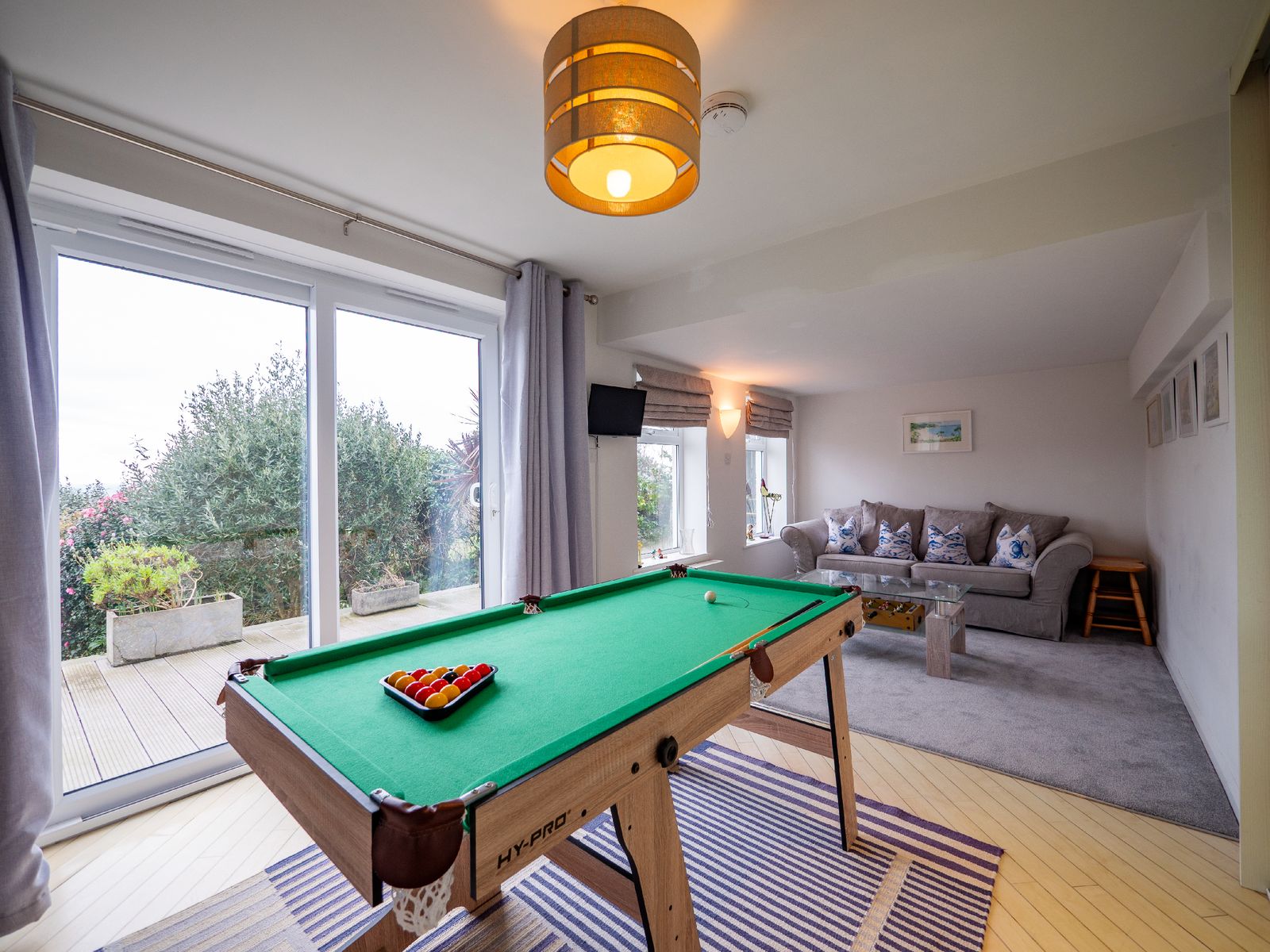 A real bonus of Skerries is the additional spacious sitting/games room on the lower ground floor, providing a second lounge where family members can spread out, relax or enjoy moments away from the main living space and take advantage of the pool and darts area. This level also benefits from direct access to a lower terrace and an additional shower room.