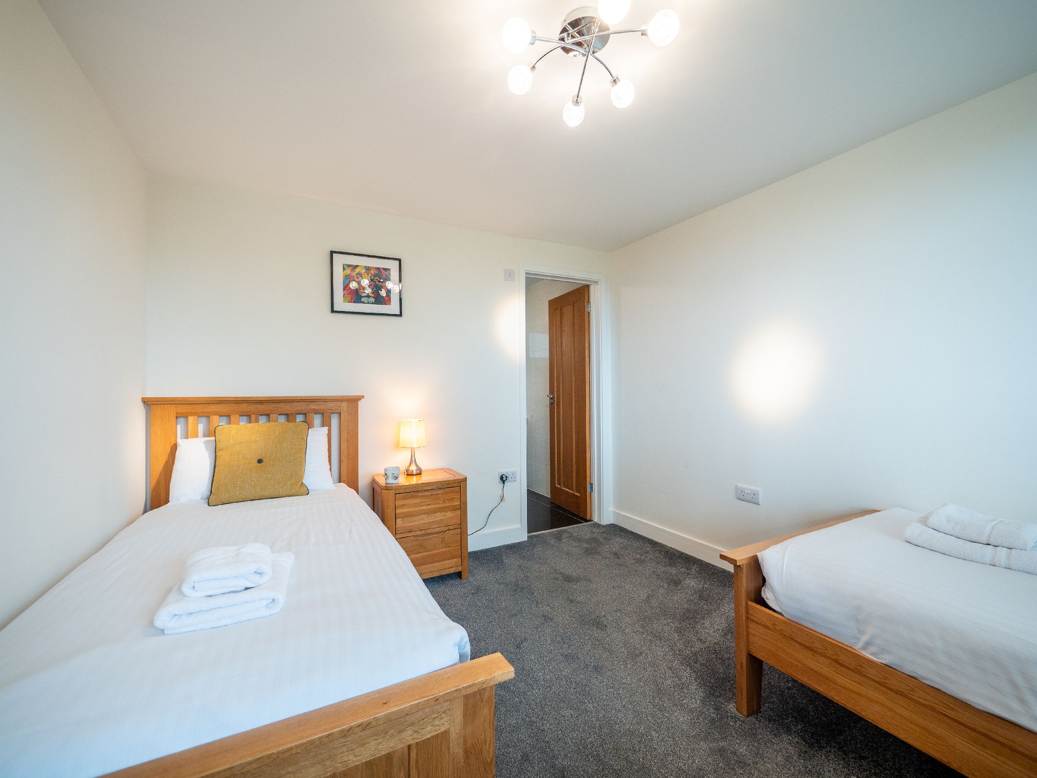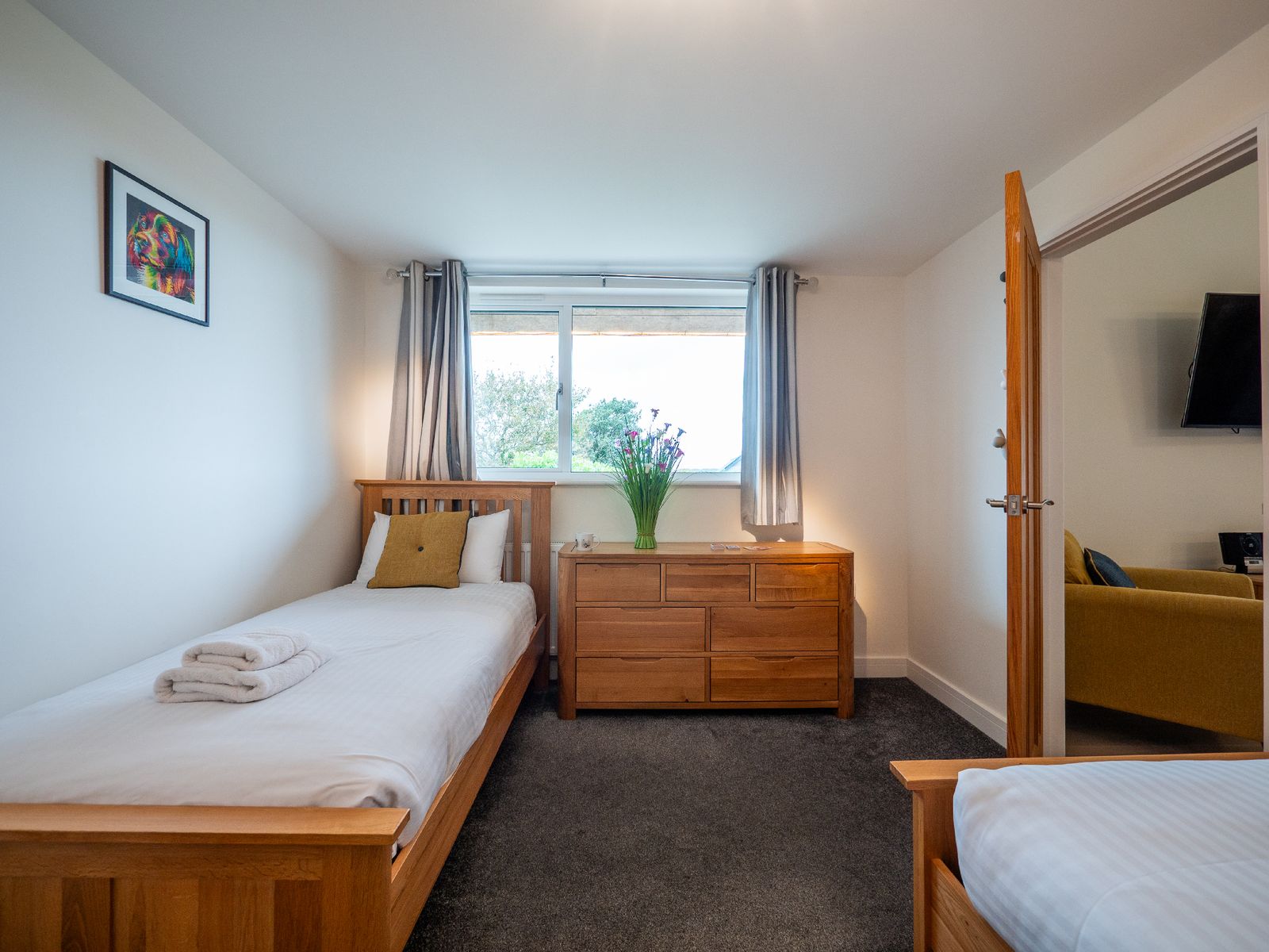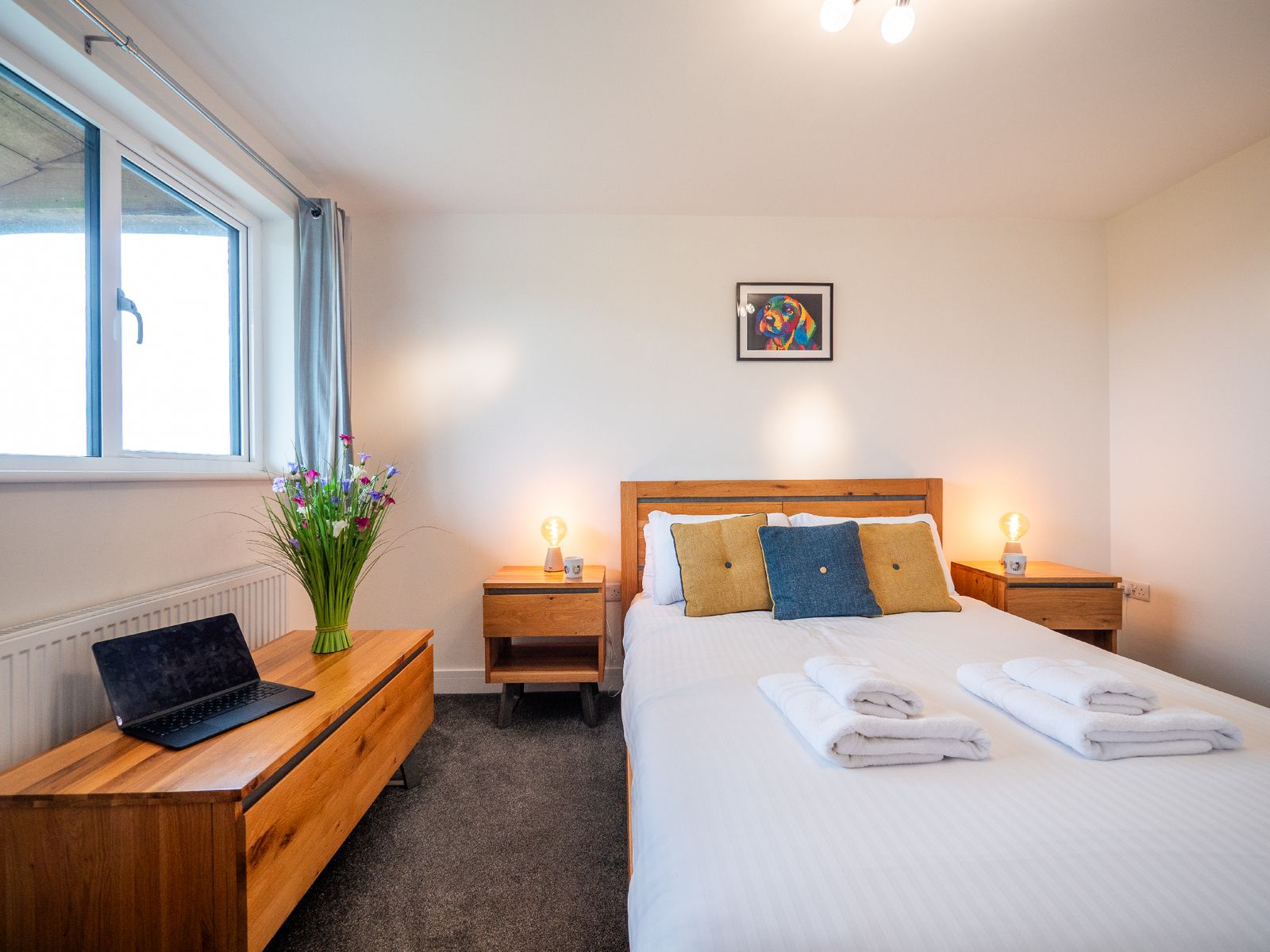 The cabin features two generously sized bedrooms: one with a king-sized bed and ensuite shower bath, and the other a stylish twin room with its own ensuite shower room. Both bathrooms are finished to a high standard with floor to ceiling quartz tiling, powerful showers, heated towel rails, and LED lit mirrors for that extra touch of luxury.